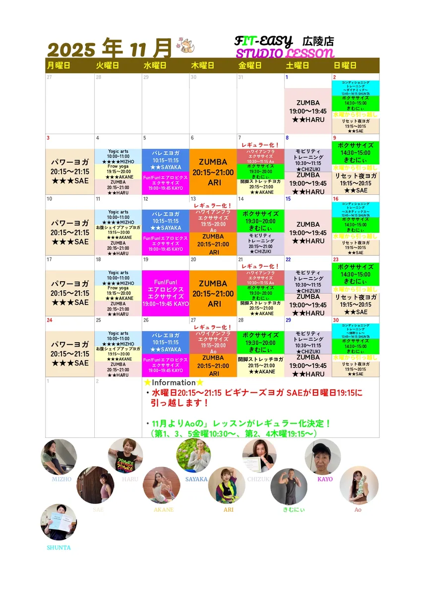 トップ > スタジオスケジュール/インストラクター紹介 > 広陵店 > 広陵店2025年11月スタジオスケジュール 広陵店 2025/10/25 17:34 広陵店2025年11月スタジオスケジュール こんにちは😃 広陵店なかにしです! 寒いですね🥶 なんか急に寒いですね🥶 また今後一段と冷え込んでくるので体調管理にはお気をつけださい🥶 11月のスケジュールです🗓️ 水曜日のSAE先生のレッスンが日曜日19時15分に移動になります🤗 急ではありますが皆様ご参加くださいませ♪ 来月もご参加お待ちしております🫡 広陵店 2025年11月 スタジオスケジュール いいね 共有する 共有する X facebook LINE リンクをコピー コメントする 0 件の返信 (新着順)