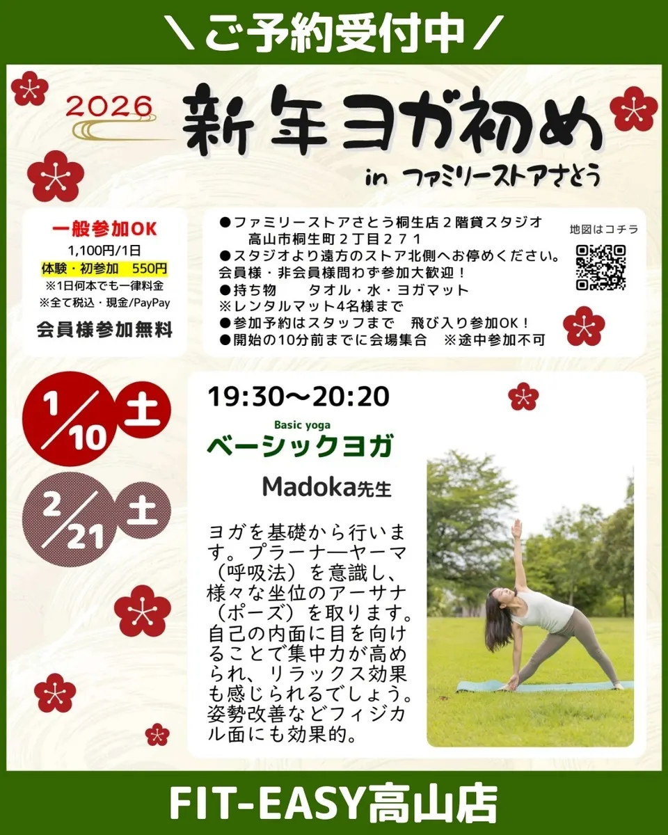 トップ > スタジオスケジュール/インストラクター紹介 > 高山店 > 高山店2026年1月スタジオスケジュール 高山店 2025/12/29 11:04 高山店2026年1月スタジオスケジュール こんにちは! 高山店のななです🐷 1月にスタジオスケジュールのお知らせです📢 2026年もたくさんのご参加お待ちしております🧘♀️ 高山店 スタジオレッスン 2026年1月 インストラクター いいね 共有する 共有する X facebook LINE リンクをコピー コメントする 0 件の返信 (新着順)