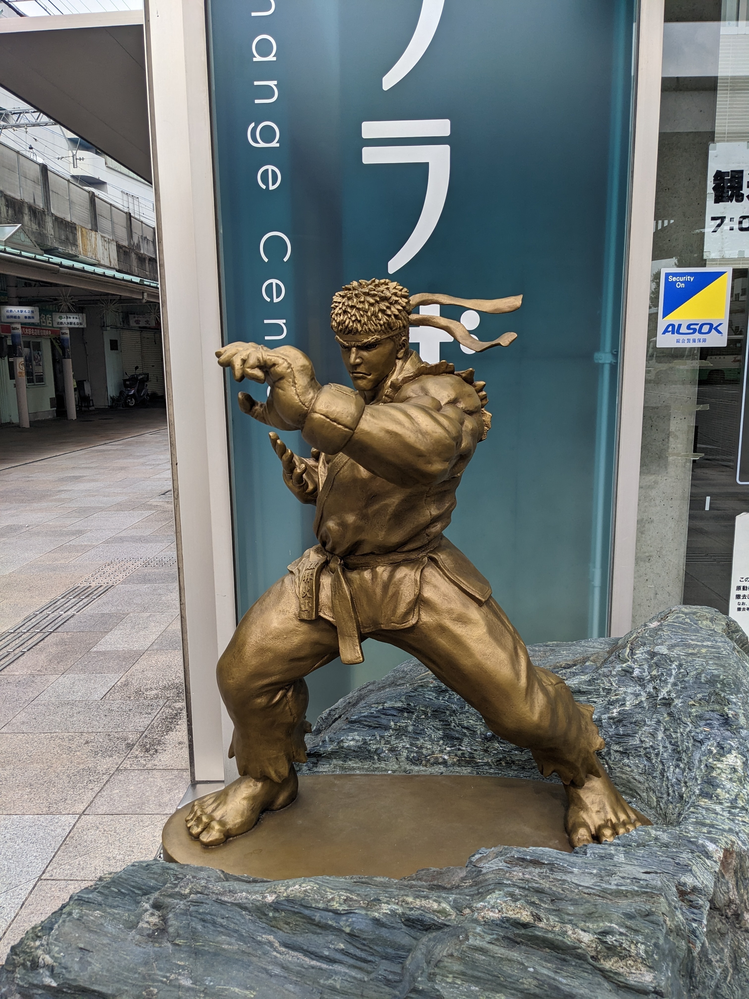 ●大和八木駅前に新しくできたリュウの銅像。 ストⅡ世代やから懐かしい💪