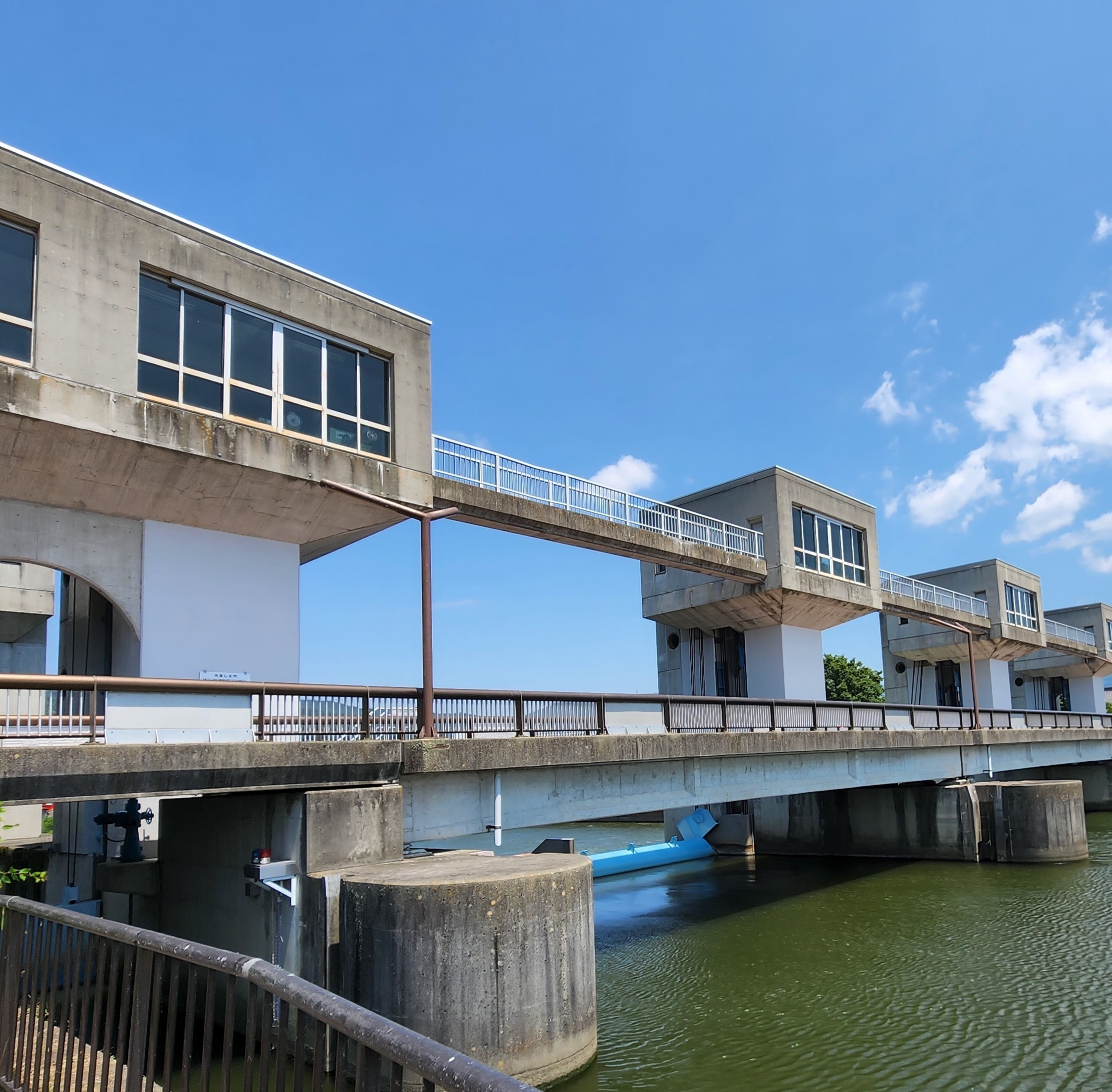 青空と共に撮影された水門の写真。諏訪湖ではなく水門というところが、流石知り尽くしたローカルならでは👏