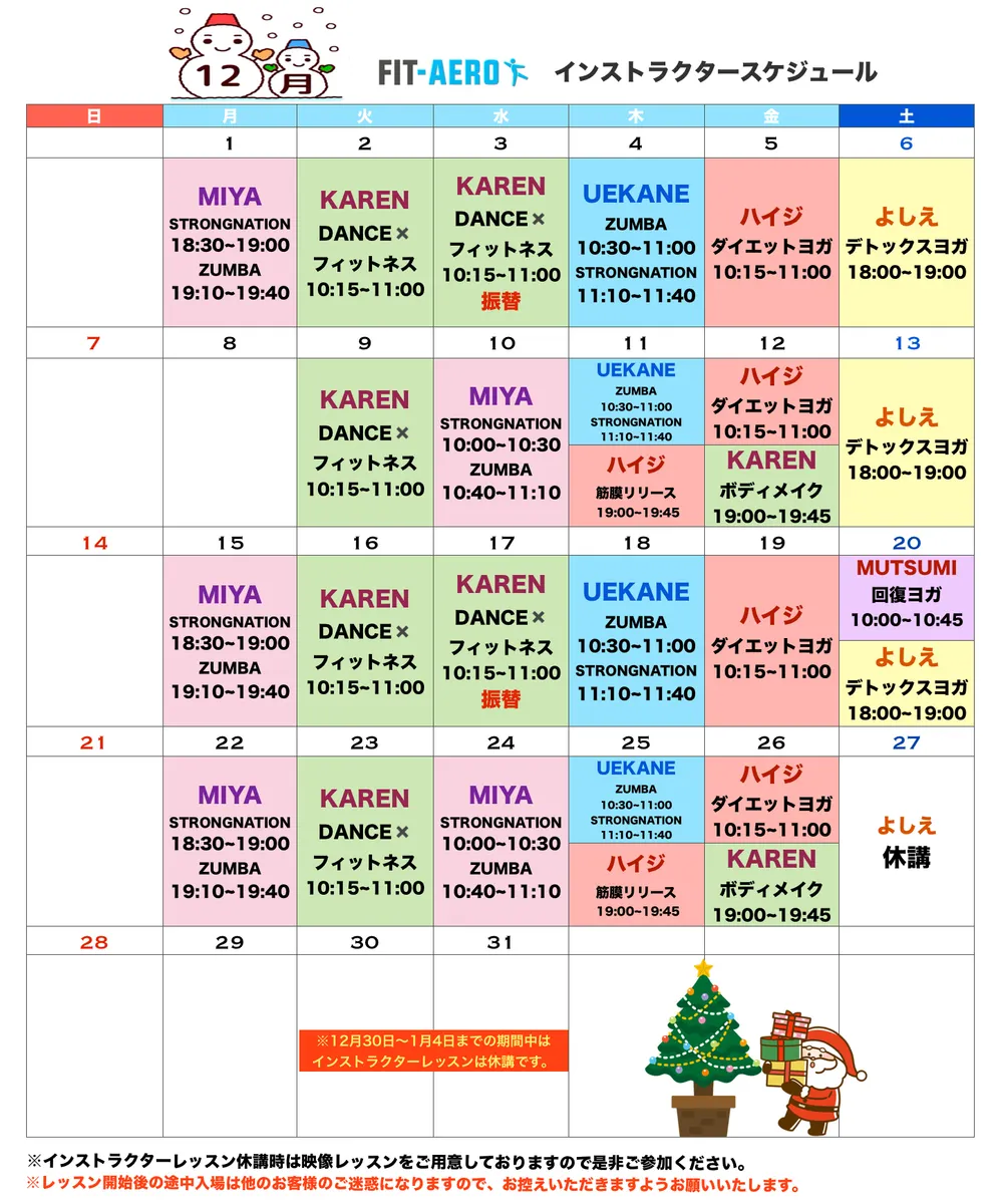 トップ > スタジオスケジュール/インストラクター紹介 > 伊那店 > 伊那店2025年12月スタジオスケジュール 伊那店 2025/11/30 19:29 伊那店2025年12月スタジオスケジュール 日頃より、伊那店をご利用いただきありがとうございます🙇♀️ 伊那店、めぐみです! 年末に向けて忙しくなる時期ですが、ぜひスタジオレッスンを上手に取り入れながら、身体を整えて“健康に年末年始を迎えられる準備”を一緒にしていきましょう✨🎄✨ ご参加お待ちしております! 伊那店 2025年12月 スタジオレッスン インストラクター いいね 共有する 共有する X facebook LINE リンクをコピー コメントする 0 件の返信 (新着順)