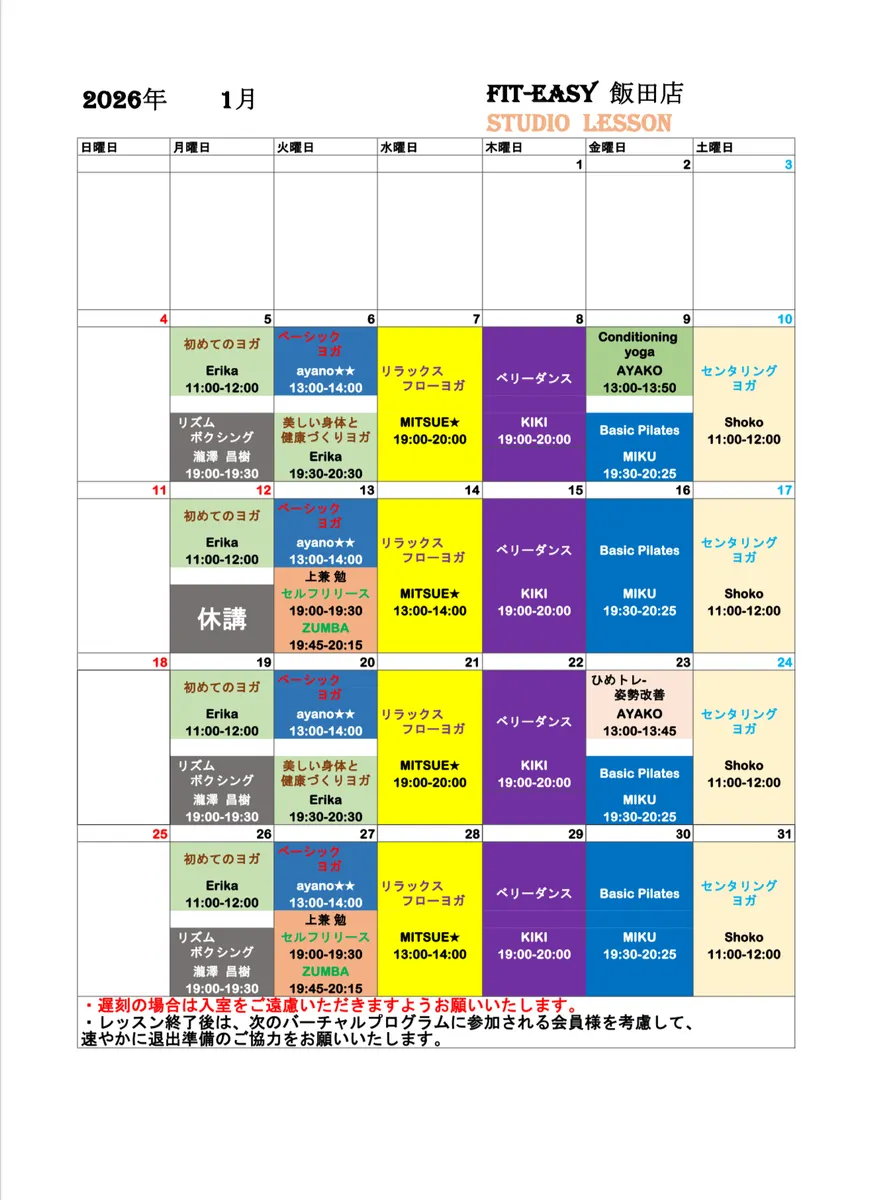 トップ > スタジオスケジュール/インストラクター紹介 > 飯田店 > 飯田店2026年1月スタジオスケジュール 飯田店 2025/12/22 12:57 飯田店2026年1月スタジオスケジュール こんにちは😊 飯田店です🌈 早いもので2025年も残り数日、、 みなさんは2026年はどんな年にしたいですか? さて、2026年1月のスケジュールのお知らせです💁♂️ 変更のあるレッスンがあります!ベリーダンスが木曜日夜だけのレッスンになります。 AYAKO先生のレッスン月2回になります。 たくさんのご参加お待ちしております🙇♀️ それでは👋 良いお年を✨️✨️ 飯田店 2026年1月 インストラクター スタジオレッスン いいね 共有する 共有する X facebook LINE リンクをコピー コメントする 0 件の返信 (新着順)