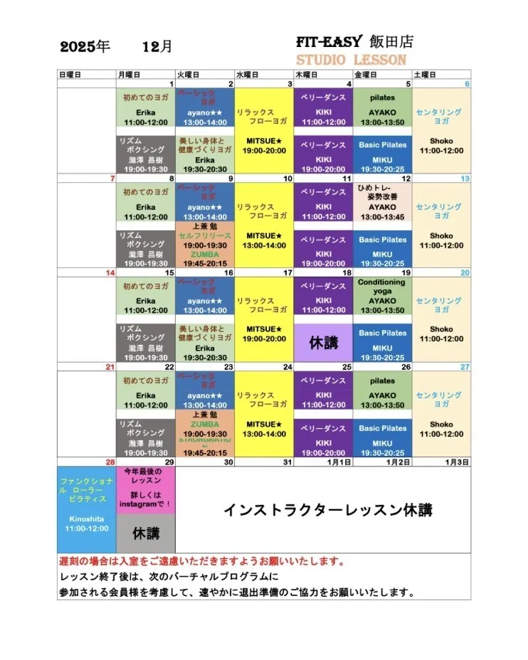 トップ > スタジオスケジュール/インストラクター紹介 > 飯田店 > 飯田店2025年12月スタジオスケジュール 飯田店 2025/11/28 16:53 飯田店2025年12月スタジオスケジュール こんにちは😊 飯田店です🌈 12月のスタジオスケジュールになります。 たくさんのご参加お待ちしております🙇♀️ 飯田店 2025年12月 インストラクター スタジオスケジュール いいね 共有する 共有する X facebook LINE リンクをコピー コメントする 0 件の返信 (新着順)
