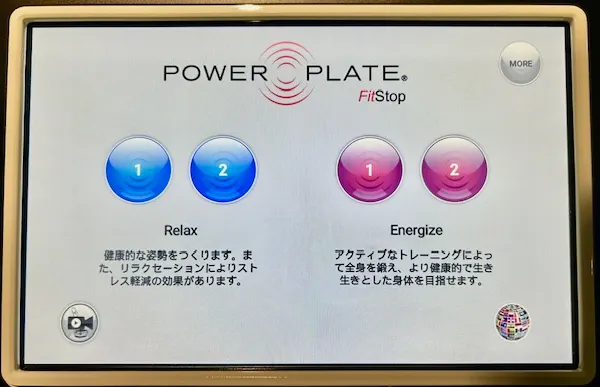 ①パワープレートを起動すると、「Relax」「Energize」を選択する画面が表示されます。