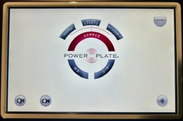 ②画面右上のMOREボタンを押すと「プログラム」「シングルエクササイズ」「マニュアルモード」が選択できます。