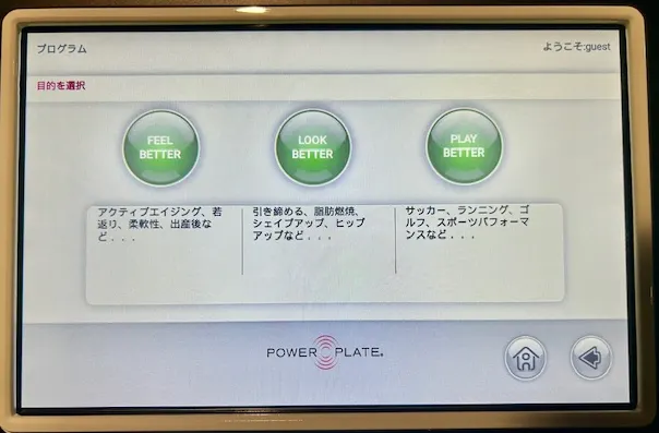 目的に沿って選んでみてください。例えば、「コア」を選択した場合は腹筋をメインとした、インナーマッスルを鍛える運動ができます。「プログラム」を選択すると、目的を選択できる画面が表示されます。若返りやシェイプアップ、スポーツパフォーマンスなどから選べます。