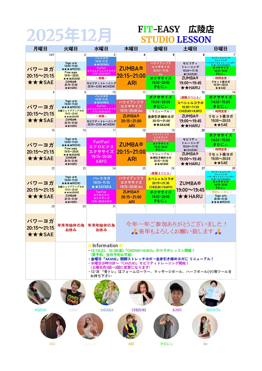 トップ > スタジオスケジュール/インストラクター紹介 > 広陵店 > 広陵店2025年12月スタジオスケジュール 広陵店 2025/11/25 16:39 広陵店2025年12月スタジオスケジュール こんにちは😃 広陵店のなかにしです🫡 もう一年も終わりですね😢 毎年毎年過ぎるのが早くなってる気が…笑 1日1日噛み締めて生きていこうと思った今日この頃😅 インフルエンザも流行っておりますので皆様体調にはお気をつけくださいね(私はインフルではなかったですが崩しております🥶) 12月のスケジュールです🌕 2025年ラスト1ヶ月もよろしくお願いいたします🙏 広陵店 2025年12月 スタジオスケジュール インストラクター いいね 共有する 共有する X facebook LINE リンクをコピー コメントする 0 件の返信 (新着順)