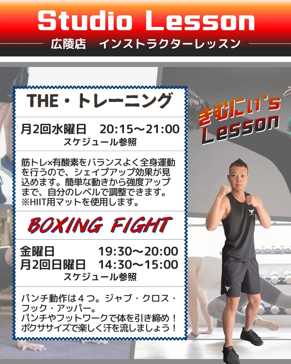 大好評につき、筋トレ要素も含んだ、筋トレ×有酸素レッスンがついに登場!