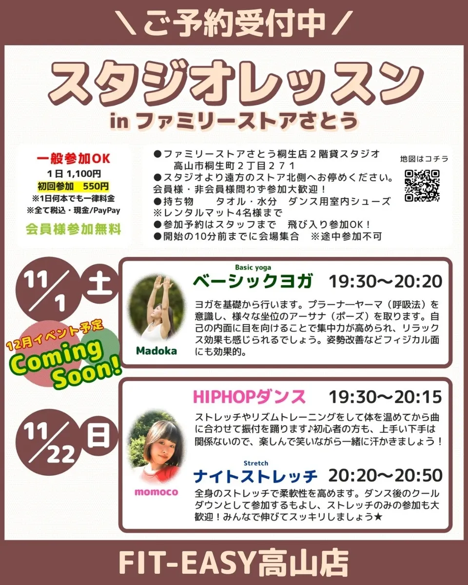 トップ > スタジオスケジュール/インストラクター紹介 > 高山店 > 高山店2025年11月スタジオスケジュール 高山店 2025/10/20 12:45 高山店2025年11月スタジオスケジュール こんにちは! 高山店ななです🐷 11月のスタジオレッスンのご案内です⭐️ 今回もたくさんのご参加お待ちしております💁🏻♀️ 高山店 スタジオレッスン 2025年11月 インストラクター いいね 共有する 共有する X facebook LINE リンクをコピー コメントする 0 件の返信 (新着順)