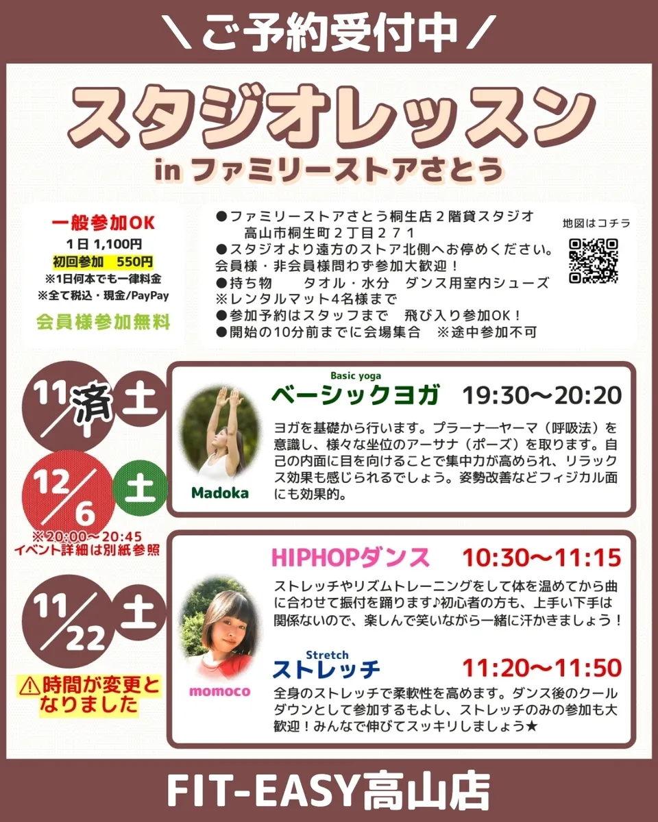 トップ > スタジオスケジュール/インストラクター紹介 > 高山店 > 高山店2025年11月スタジオスケジュール 高山店 2025/10/20 12:45 高山店2025年11月スタジオスケジュール こんにちは! 高山店ななです🐷 11月のスタジオレッスンのご案内です⭐️ ※momoco先生のレッスンが時間変更になりました! ご確認下さい🙇♀️ 今回もたくさんのご参加お待ちしております💁🏻♀️ 高山店 スタジオレッスン 2025年11月 インストラクター いいね 共有する 共有する X facebook LINE リンクをコピー コメントする 0 件の返信 (新着順)